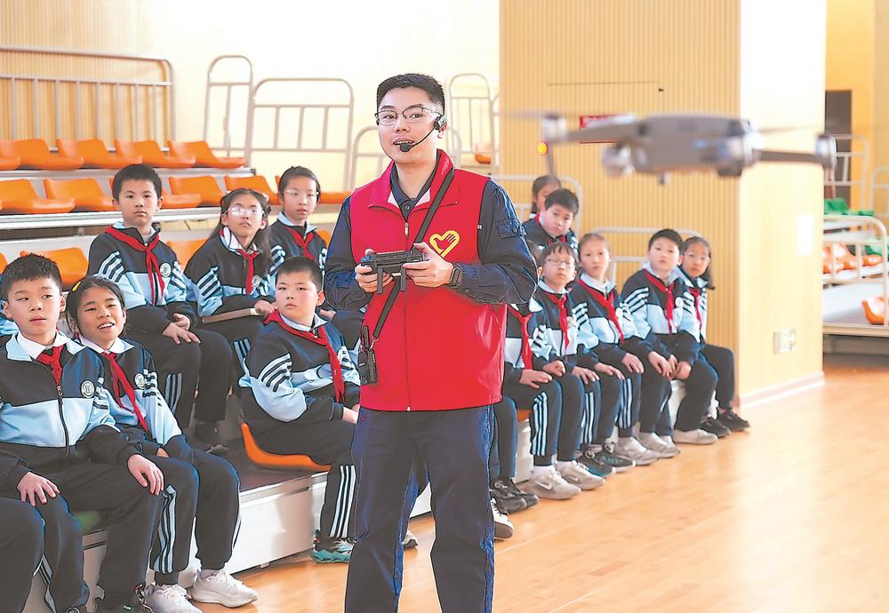 近日,由国网福州供电公司等单位团员青年共同组成的青年志愿者团队,走进福州市晋安榕博小学开展“‘电’亮童心 筑梦未来”电力科普进校园活动。图为志愿者在进行电力科普实验。(陈蒸 柯俊明 摄)