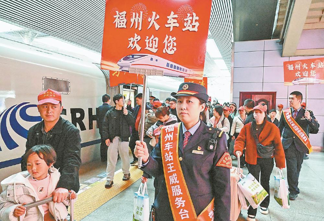 福州火车站迎来春节后首趟务工专列