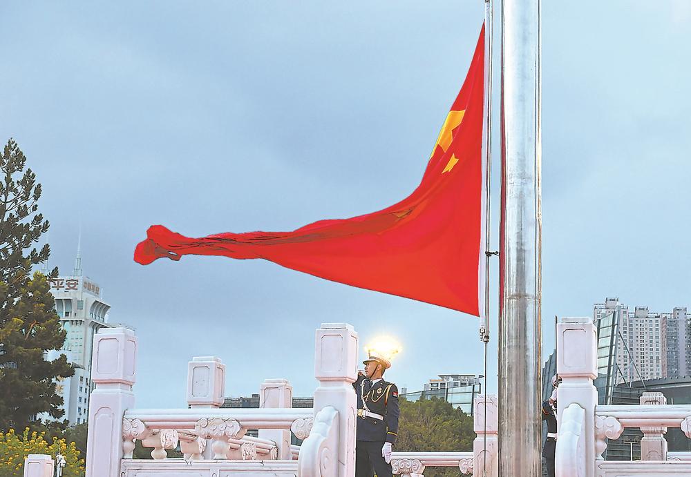 庆祝中华人民共和国成立76周年 福州五一广场举行升国旗仪式