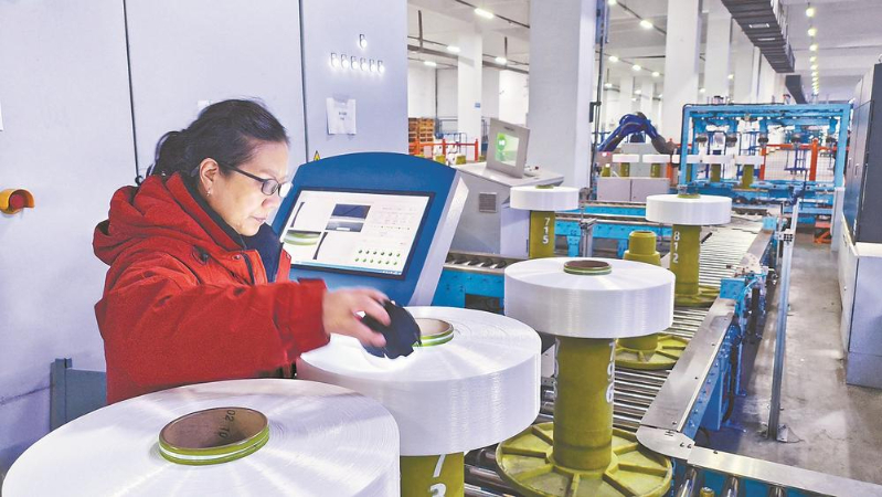 工人在检查高弹力母丝质量